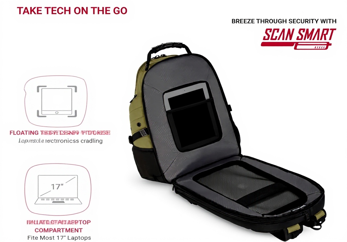 • Compartiment ScanSmart TSA pour passage rapide aux contrôles de sécurité aéroportuaires
