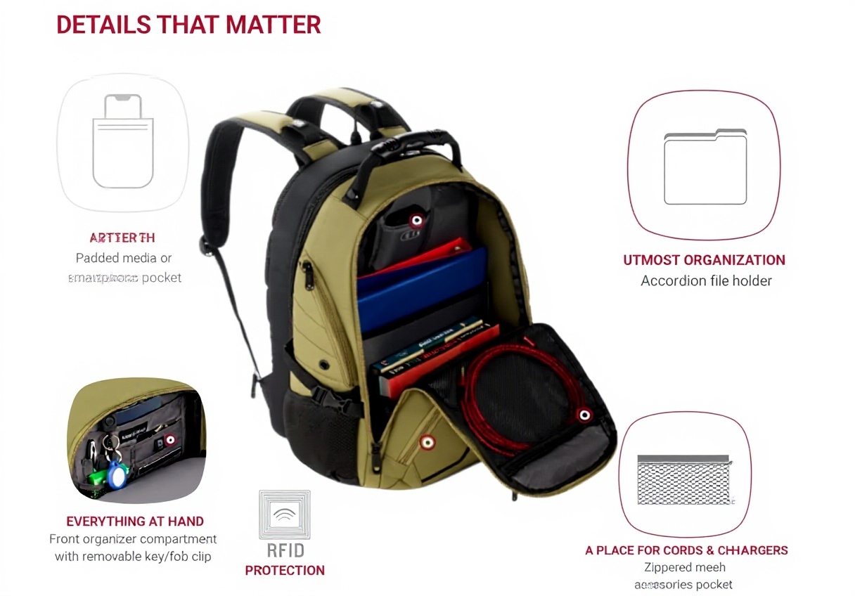 Idéal pour les professionnels en déplacement fréquent, les étudiants et les voyageurs, ce sac s’adapte à divers contextes : trajets domicile-bureau, voyages d’affaires, sessions d’étude en bibliothèque ou excursions weekend. Son design mixte et ses multiples poches accommodent aussi bien les équipements électroniques que les effets personnels, tandis que la sangle Add-a-Bag permet de le fixer sur une valise.